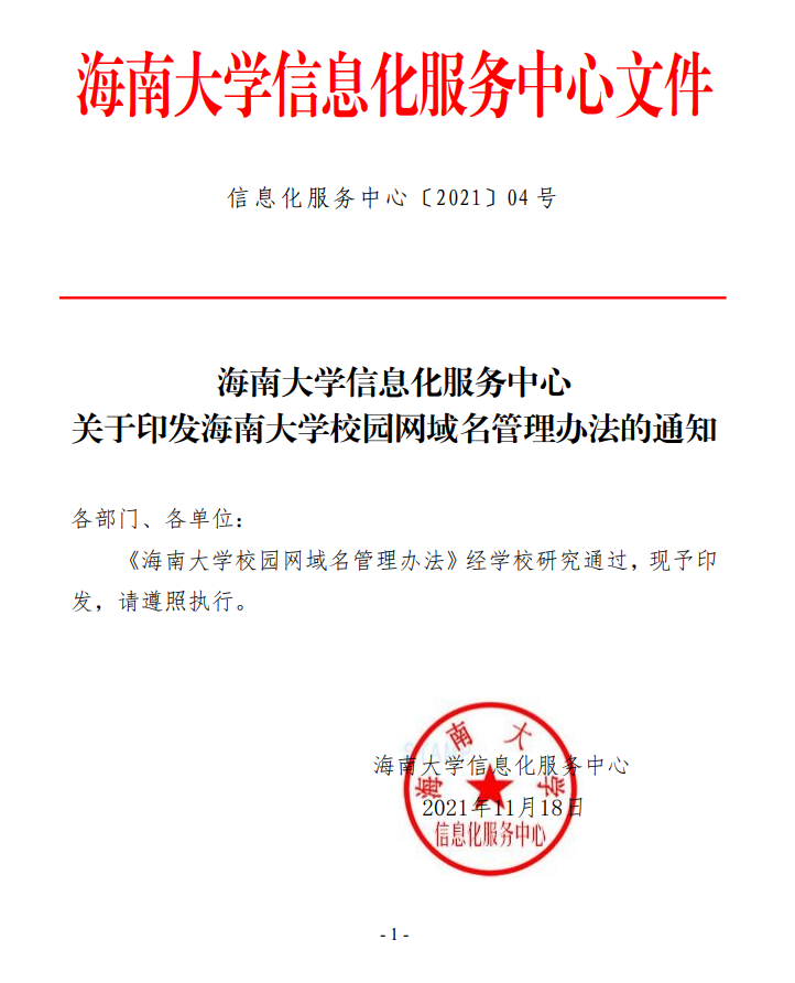 第十三条 校园网用户申请非 hainanu.edu.cn 域名的,需经学校批准同意,同时在信息化服务中心备案并接受管理。