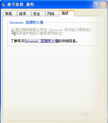 5. 在“高级”选项卡的“Internet 连接防火墙”中,选中“通过限制或阻止来自 Internet 的对此计算机的访问来保护我的计算机和网络”旁边的复选框。