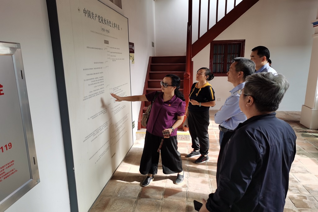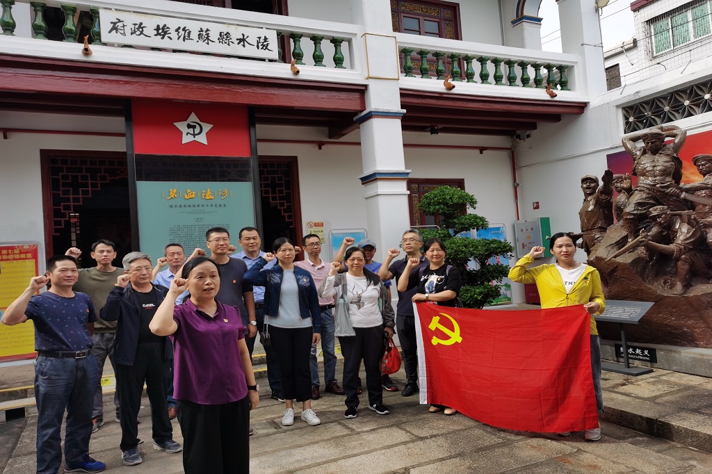 在陵水县苏维埃政府旧址,胡静带领全体党员举行宣誓仪式,重温入党誓词。