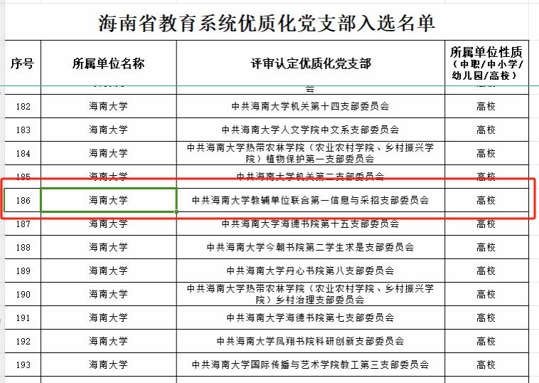 信息与采招党支部获海南省教育系统“优质化党支部”称号