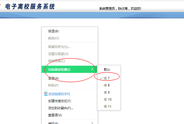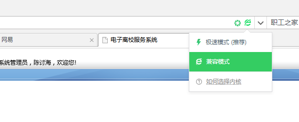 使用校内信息门户登录,登录密码为门户密码,登录之后将360浏览器改为IE7兼容模式,操作如下