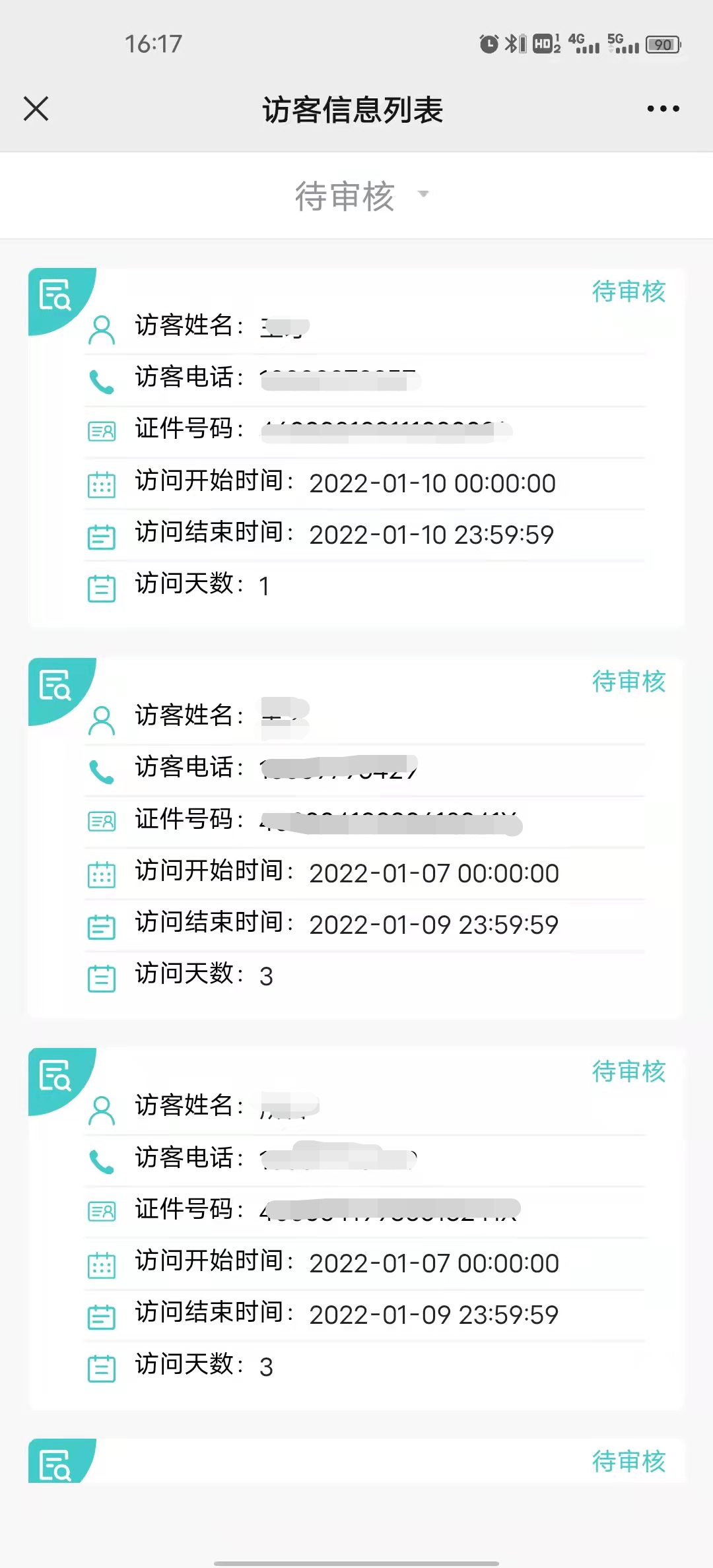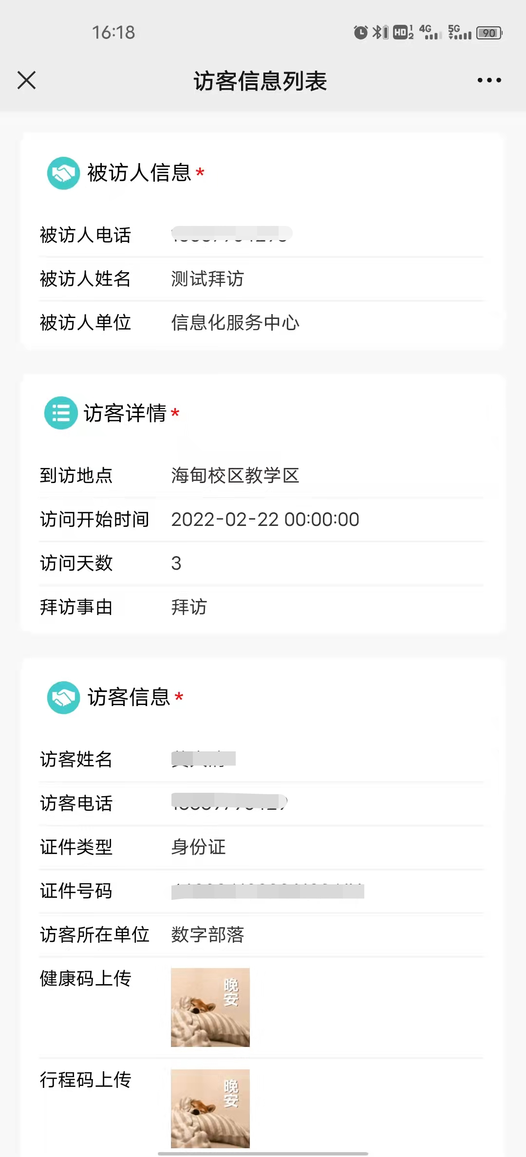 3.提交预约后,等待被访单位进行审核,可在预约列表查看审核的状态,审核通过后才可按照进校时间进出校门。