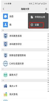 5、打开英国威廉希尔公司移动服务大厅界面后,可以在设置中将移动门户在微信消息界面置顶。