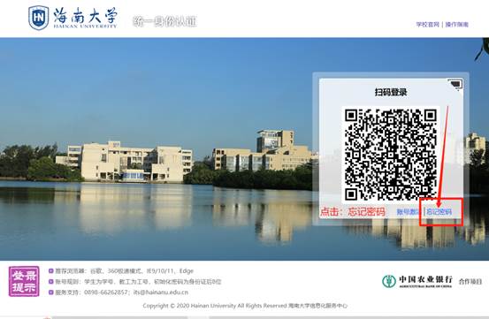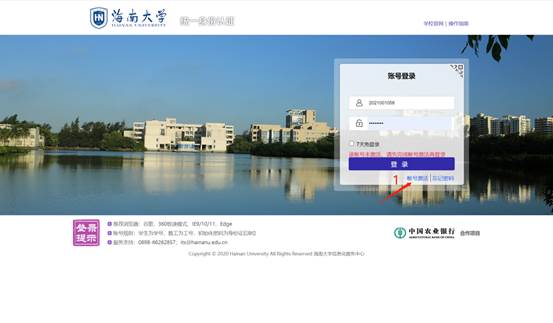 1、访问认证登录地https://authserver.hainanu.edu.cn/authserver/login