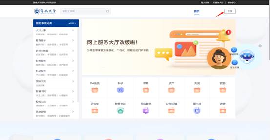 1、学校官网进入【网上服务大厅】→点击【登陆】跳转到登陆页面
