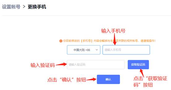 4、如何更换手机号?(PC端、移动端其中一端操作即可)