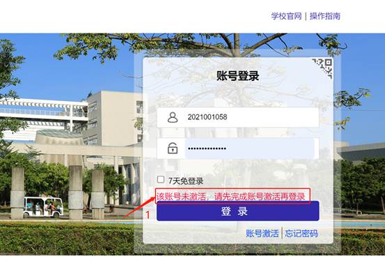 1、登陆时会提示账号未激活,需要进行账号激活操作,点击“账号激活”按钮