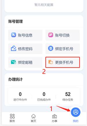 移动端更换手机号:服务大厅-我的-更换手机号,点击“更换”按钮,输入