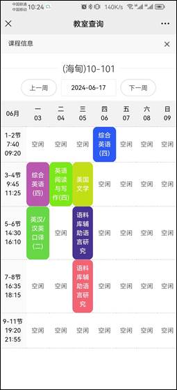 通过条件查询获取教室列表后,点击教室名称即可查看该教室课程信息表。