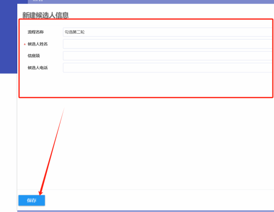 手动添加候选人时,点击投票轮次列表中的“候选人”链接可生成该轮次的候选人列表,点击“新增候选人”按钮打开添加专家的窗口,填写完候选人信息后点击“保存”即可完成候选人信息的添加。