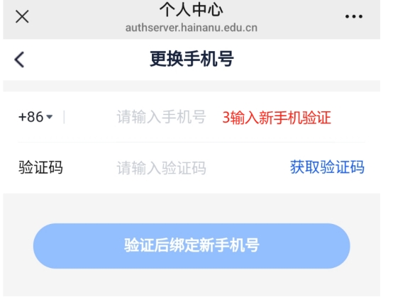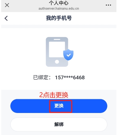 2、(1)更换手机号:浏览器搜索学校官网访问网上服务大厅或复制网上服务大厅https://ehall.hainanu.edu.cn/index.html#/链接到浏览器访问→输入账号密码登陆(忘记密码的可通过忘记密码手册找回)→我的→更换手机号→更换→输入新手机号验证即可