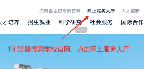 (1)浏览器搜索学校官网访问→点击网上服务大厅(或访问网上服务大厅https://ehall.hainanu.edu.cn/index.html#/链接)→输入账号密码登陆(忘记密码的可通过忘记密码手册找回)